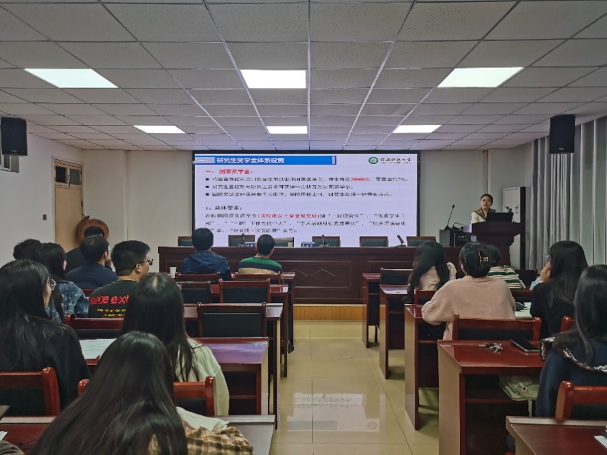 会上,王浩博士首先传达了学校研究生处颁布的信阳师范大学硕士研究生学奖助体系、国家奖学金和学业奖学金管理办法、“三助一辅”工作实施意见及家庭经济困难研究生资助工作管理办法,宣读了《awc777万象城娱乐官网硕士研究生奖学金管理办法(试行)》,并对2023年研究生资助政策、奖学金类型、金额、名额分配、具体评定办法及依据进行了详细解读。随后,研究生工作秘书闫军辉副教授对奖助学金评比中学生有可能出现的问题进行了解答,并详细介绍了奖助学金评审流程。闫老师强调,在奖助学金评定工作中,学院一贯秉持公平、公正、公开、原则,并全程接受同学们的监督。研究生奖助学金评审小组详细解答2023级新生提出的问题,确保新生能准确了解奖助学金评定政策,并在激励同学们严格要求自我、专注学习、提升科研能力。