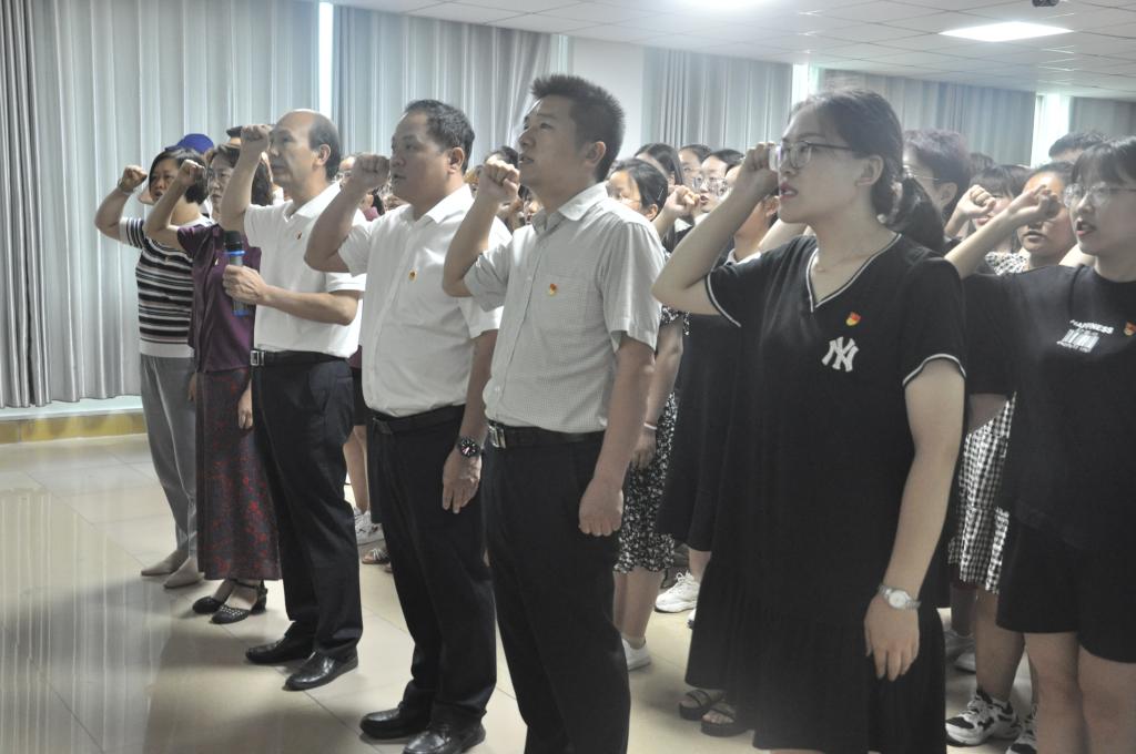 大会在雄壮的《国际歌》中拉开序幕。姚玉坤宣读了上半年新发展预备党员名单。接着,在吴泽成的带领下,新入党的同志高举右拳,面对着鲜红的党旗庄严宣誓。新党员代表龚奕媛、老党员代表张世可分别结合自身经历进行发言。
