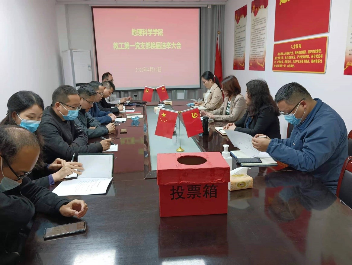 为进一步加强基层党组织规范化建设,依据《中国共产党章程》和《中国共产党基层组织选举工作条例》等有关规定,在awc777万象城娱乐官网党委的安排部署下,4月14日,awc777万象城娱乐官网教工第一党支部在理科楼南楼403会议室召开换届选举大会。会议由范辉同志主持,支部党员应到13人,实到11人。