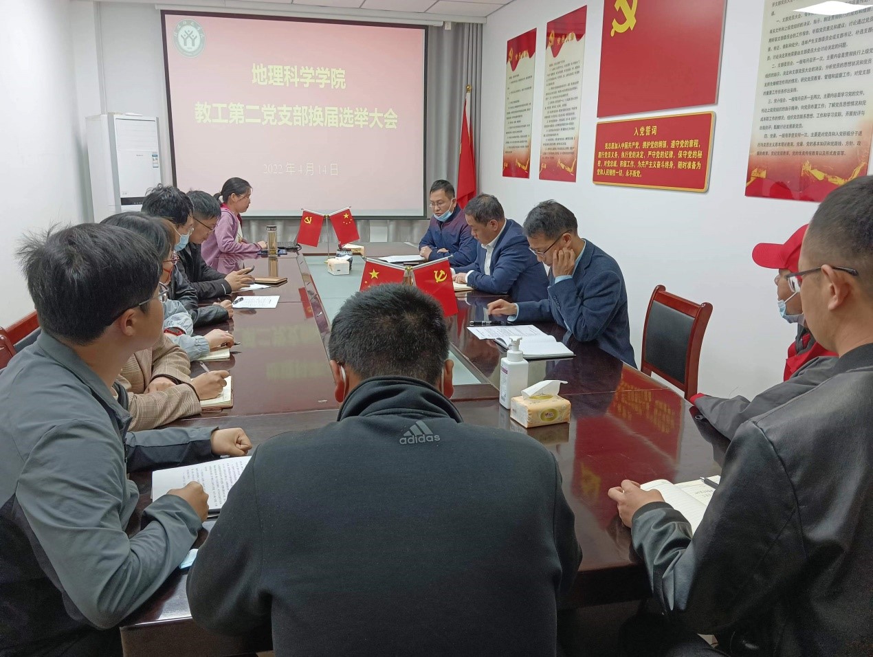 按照中共信阳师范学院委员会组织部《关于开展党支部换届选举工作的通知》要求,4月14日,awc777万象城娱乐官网教工第二党支部换届选举党员大会于理科楼南楼403会议室顺利召开,支部党员应到15人(含预备党员1人),实到12人,会议由上届支委会成员颜俊同志主持。