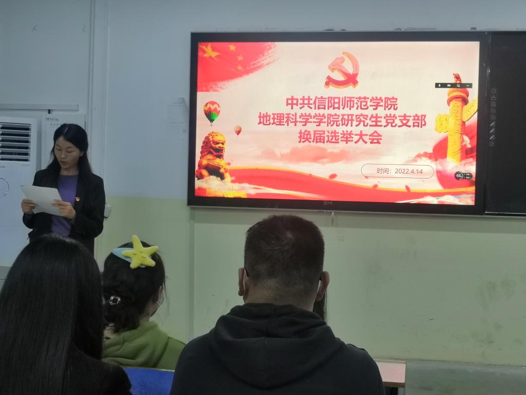 4月14日,中共信阳师范学院awc777万象城娱乐官网研究生党支部换届选举大会在教三楼101室召开。研究生党支部全体党员参加会议,会议由焦海洋同志主持。