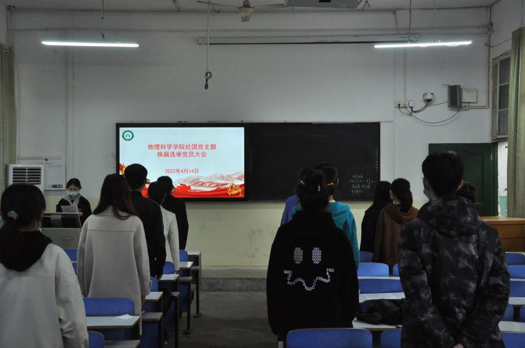 换届选举大会在庄严的《国歌》声中正式拉开序幕。会上,姚玉坤同志向大会做任期工作报告,全面总结社团党支部在政治理论、党员教育工作、党员模范先锋作用等方面的工作,分析工作中存在的不足,并对今后社团党支部工作提出要求,要不断加强社团党支部建设,切实发挥基层党组织战斗堡垒作用和党员先锋模范作用。全体党员认真审议通过了工作报告,按照大会通过的选举工作办法,选举产生了由姚玉坤、张文佳、冯怡鑫、王宁宁等四名同志组成的新一届社团党支部委员会。大会在雄壮的《国际歌》中圆满落下帷幕。
