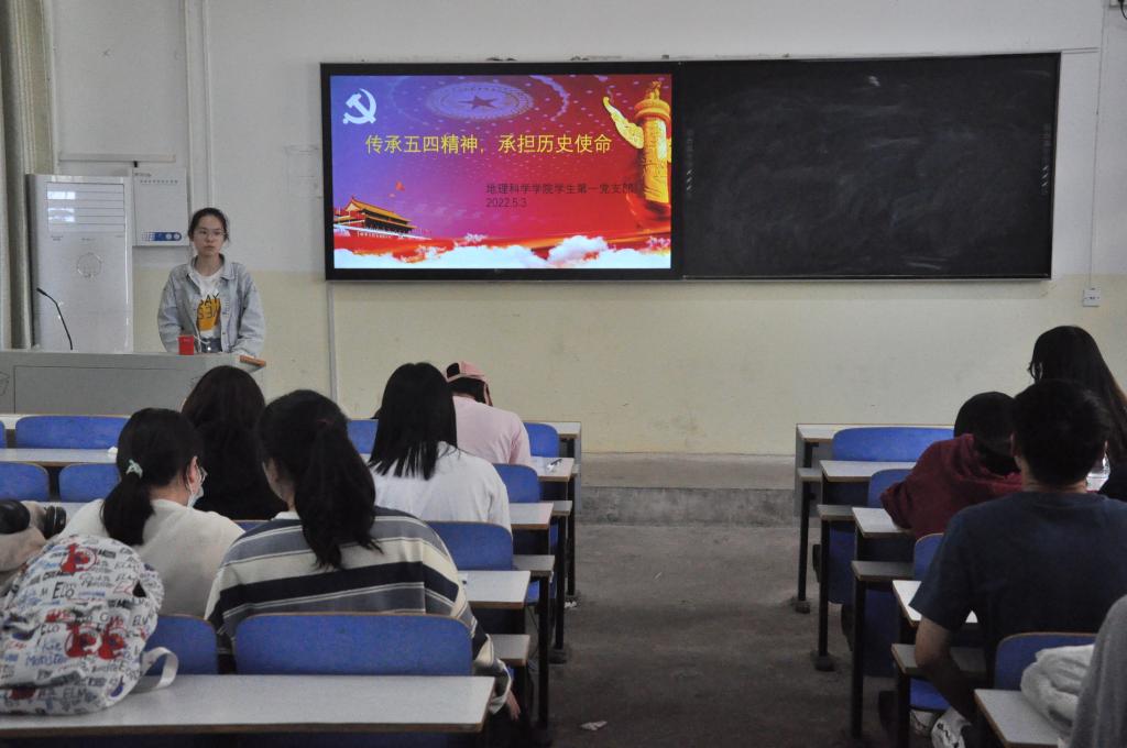 为迎接五四青年节,激励引领大学生党员继承和发扬五四精神,5月3日,awc777万象城娱乐官网学生第一党支部于教三01开展了“传承五四精神,承担历史使命”主题党日活动。支部全体党员参与了本次活动,活动由宣传委员王景怡主持。