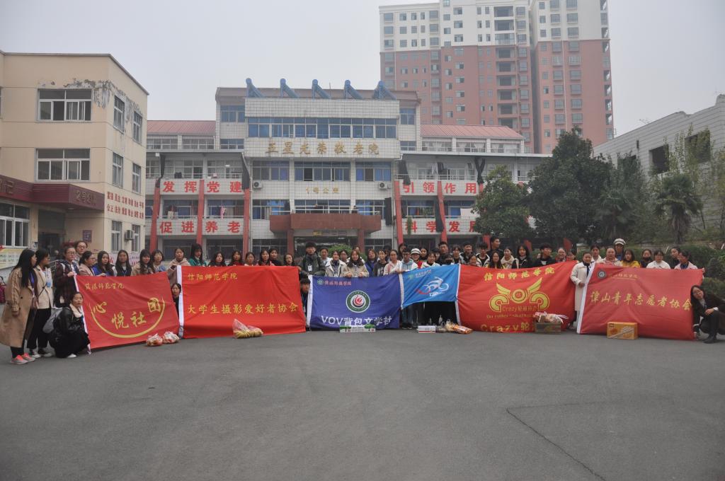 冬日暖阳,与爱同行。11月24日,由VOV背包文学社主办,谭山青年志愿者协会、大学生摄影爱好者协会、Crazy轮滑协会、1778骑行协会、心悦社团协办的敬老院、福利院关爱之旅于信阳市五星光荣敬老院、信阳市儿童福利院顺利开展,VOV背包文学社社长孟恩慧及各社团负责人与各社团部分社员一同参加此次活动。