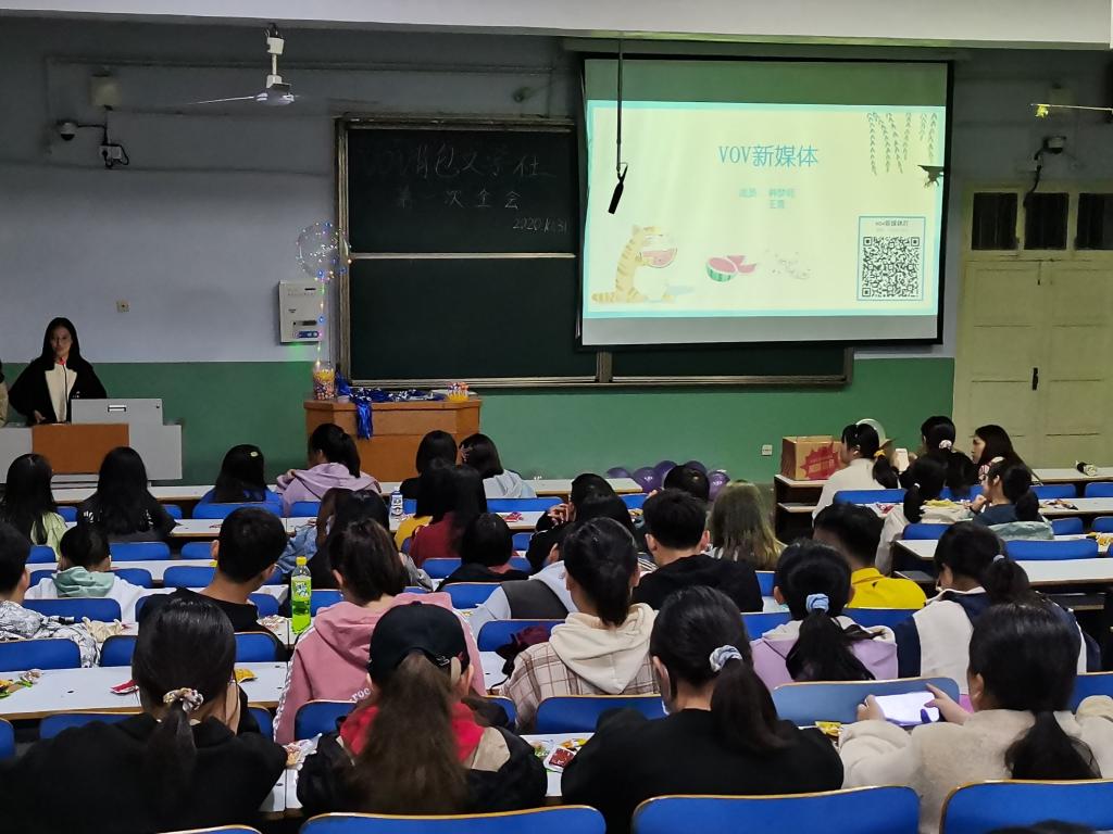 10月31日,awc777万象城娱乐官网2020—2021学年上学期VOV背包文学社第一次全会于教二梯三顺利召开。社团负责人及社团新成员共计百余人一同参加本次会议。会议由社长王欣会主持。