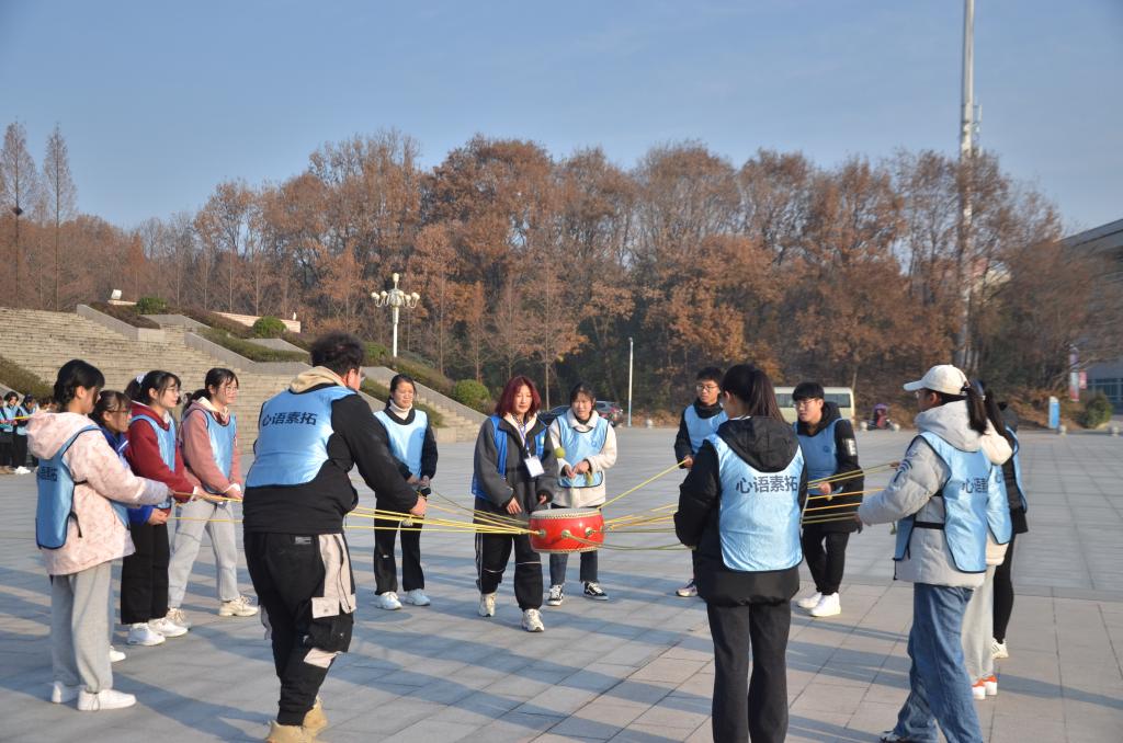 为促进大学生心理健康教育,普及心理健康知识。12月19日,信阳师范学院大学生心理健康教育中心和awc777万象城娱乐官网学生会纪律生活部心理组联合举办的心理素质拓展活动于心语拓展园顺利开展。信阳师范学院大学生心理健康教育中心三位教练员,awc777万象城娱乐官网心理组组长张梦缘、副组长段青怡及awc777万象城娱乐官网近百名2020级学生一同参加此次活动。