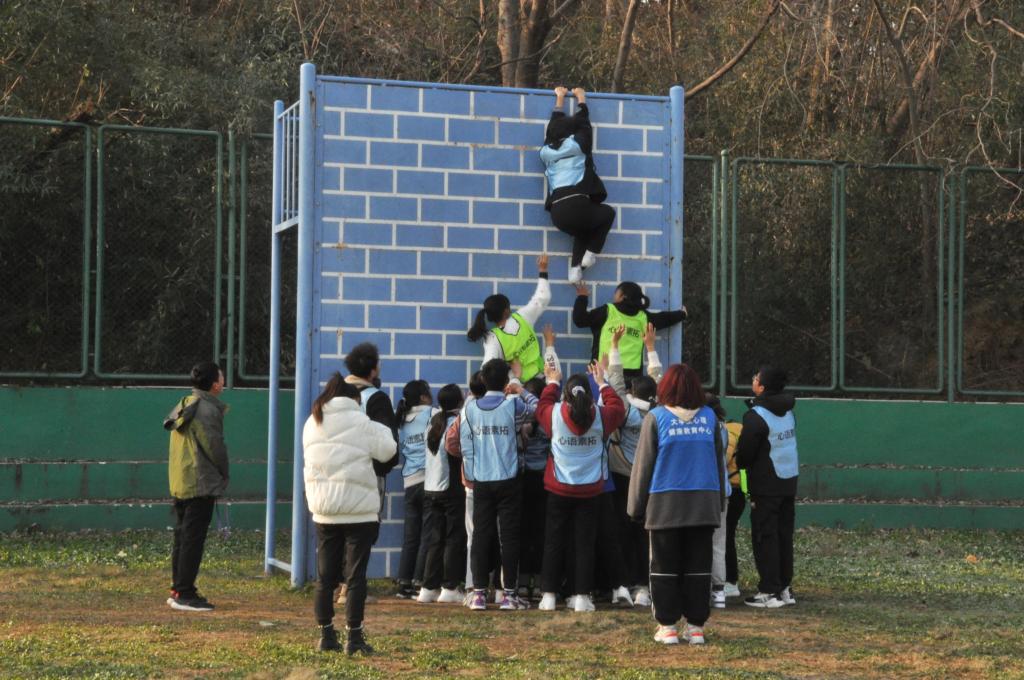 活动伊始,同学们12人一组分队进行珠行万里、同心鼓、不倒森林热身活动。随后,教练员将各项相对危险的活动的注意事项进行强调,提醒同学们注意安全。“高空断桥”活动中,同学们在教练的指导下克服恐惧心理,慢慢爬上高梯,走上断桥,一跃而下,突破自我;“毕业墙”活动中,同学们团结一致,齐心协力,依次翻越高墙,欢呼声高涨;“穿越电网”活动中,同学们互相帮助,默契配合,迅速完成了游戏任务;“信任背摔”活动中,同学们互相手搭肩形成人桥,给予同学足够的信任和理解。各个游戏精彩纷呈,活动在同学们欢声笑语、其乐融融的氛围中落下帷幕。