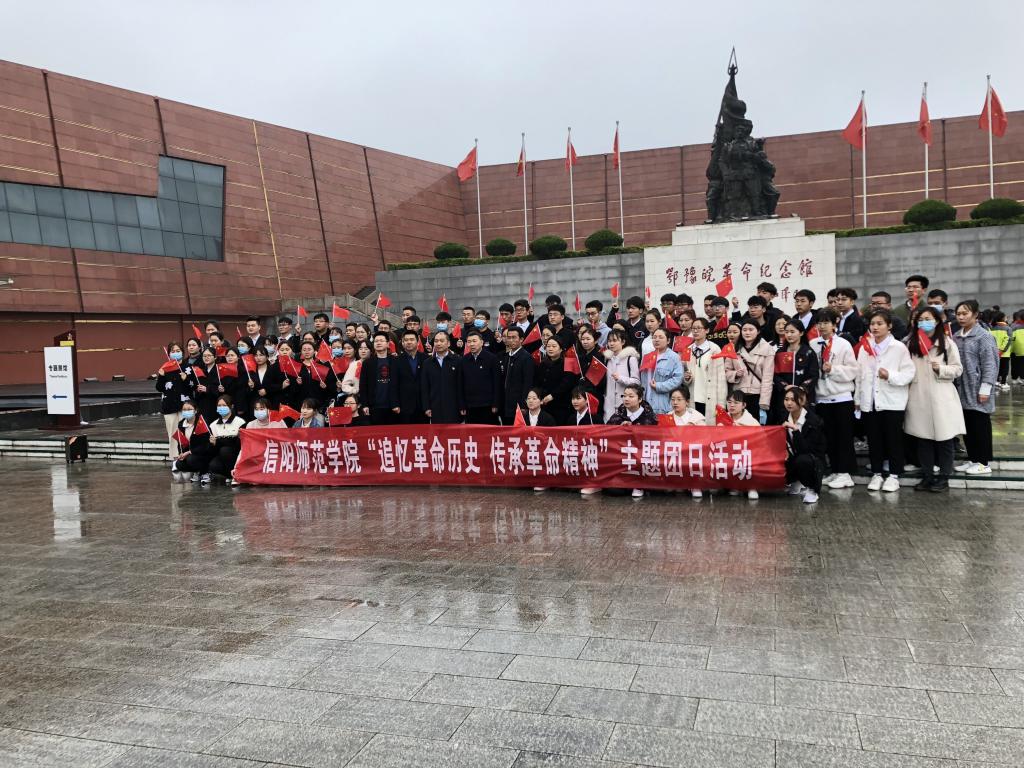 4月1日,由信阳师范学院校团委组织,信阳师范学院awc777万象城娱乐官网承办的“追忆革命历史,传承革命精神”主题团日活动于鄂豫皖革命纪念馆顺利举办。校党委副书记、工会主席王文臣,校团委书记王建旭,校团委副书记朱国朋,学院党委副书记朱伟,校团委老师雷玲、张锐,学院团委老师及万象城官网百余名学生共同参加此次活动。