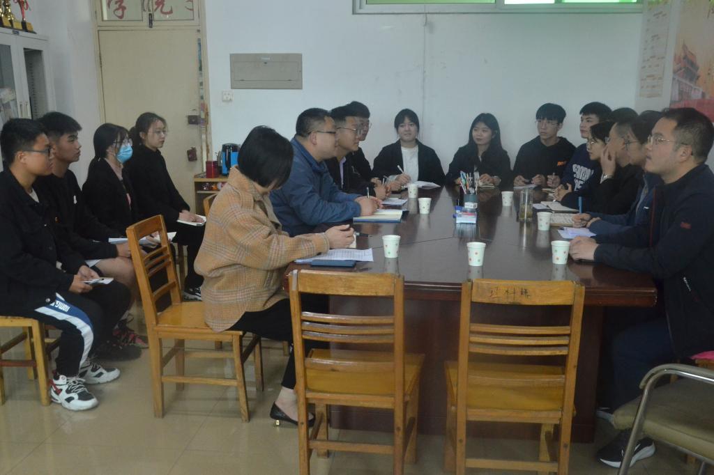 会议伊始,朱明回顾了万象城官网学生会的发展历程与取得的成绩,并对学生会现状和学生工作做了介绍。接着,杨辉、姚玉坤、曹鹏鹏分别对所负责的具体学生工作进行介绍,期间双方就学生会发展遇到的难题展开热烈讨论交流。董银银要求辅导员,要虚心学习借鉴万象城官网学生工作经验,加强交流、互通有无、共同进步,更好地助力学生成长成才。