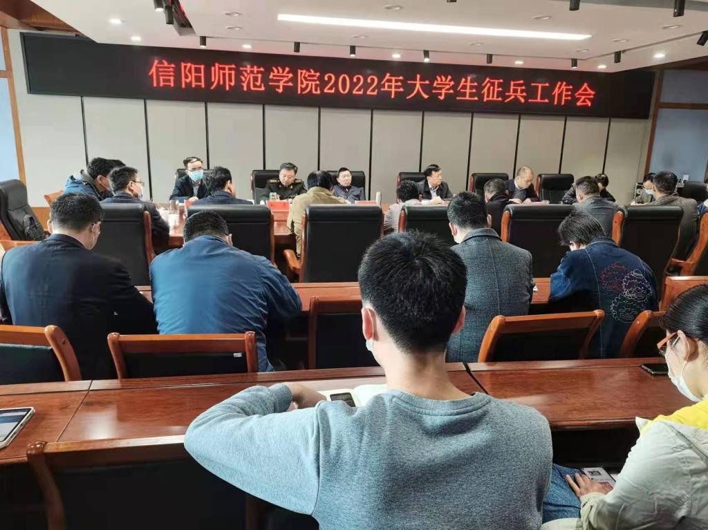 会上,校人民武装部负责同志传达了全国、省、市征兵工作会议精神,并对万象城官网2022年征兵工作进行安排。姚磊结合信阳市工作实际,对征兵工作相关政策进行了详细解读。