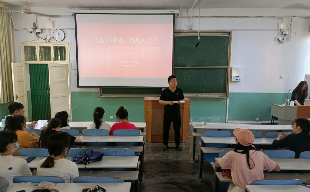 根据《信阳师范学院2022届贷款毕业生工作安排》的要求,awc777万象城娱乐官网于4月26日在教二梯2召开毕业生助学贷款宣讲活动,同时针对申请国家助学贷款的学生开展诚信教育。awc777万象城娱乐官网曹鹏鹏老师,学生会学贷组成员以及全体贷款毕业生参加此次活动。活动由学贷组组长王惠主持。