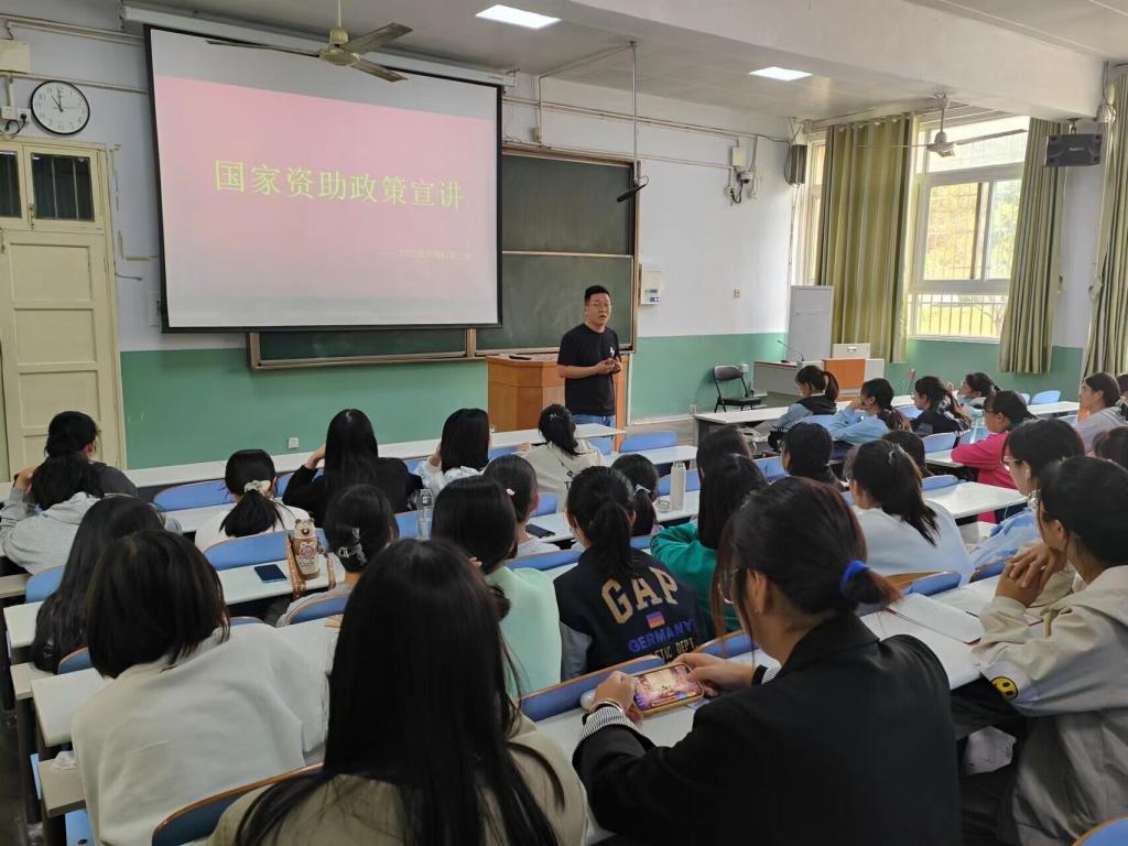 10月18日,awc777万象城娱乐官网于教二梯1和教二梯2顺利召开2022-2023学年资助宣讲会。awc777万象城娱乐官网资助专员曹鹏鹏、各班级学生代表共120余人一同参加了此次宣讲会。