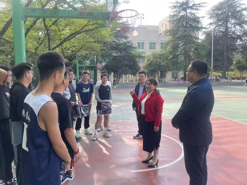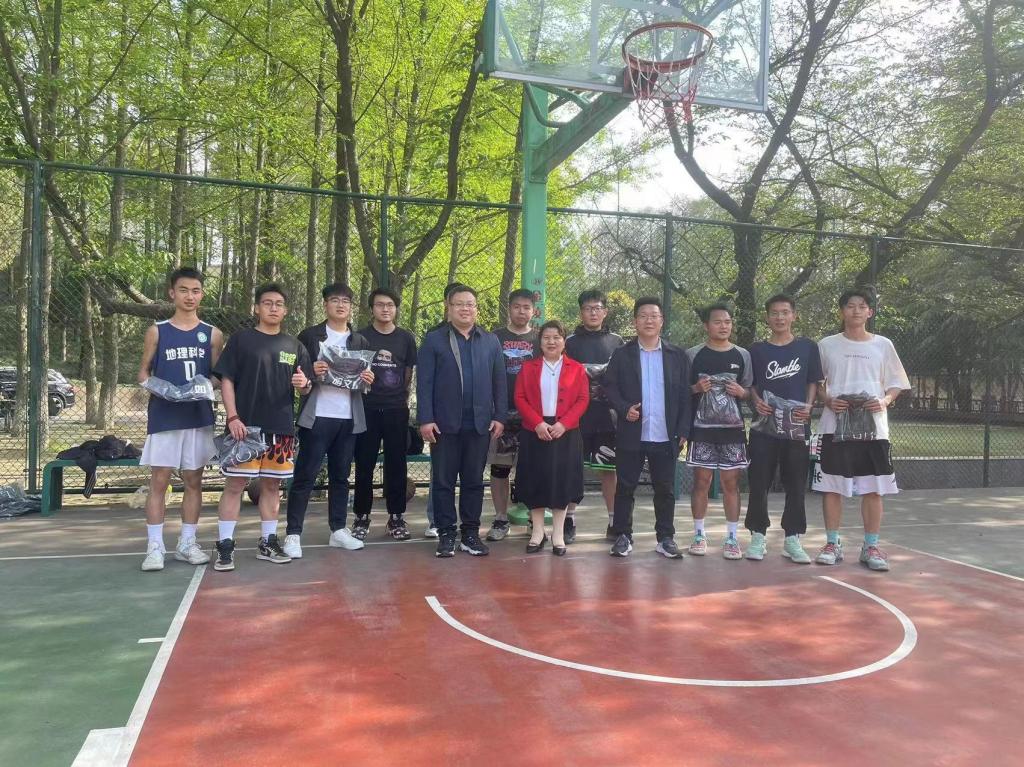 4月10日,万象城官网篮球队在樱花球场举行队服发放仪式。万象城官网党委书记宋力、党委副书记朱明、团委书记曹鹏鹏莅临现场为球员们发放队服。