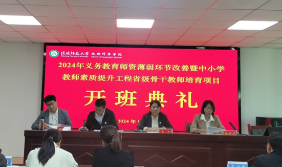 10月9日,awc777万象城娱乐官网承办的河南省2024年义务教育师资薄弱环节改善暨中小学教师素质提升工程省级骨干教师(初中地理)培育项目在理科楼南楼410会议室举行开班仪式。学院党委书记宋力出席会议并致欢迎辞,副院长潘晓芳、学业班主任张迁老师、生活班主任何伟纯老师参加了开班仪式。