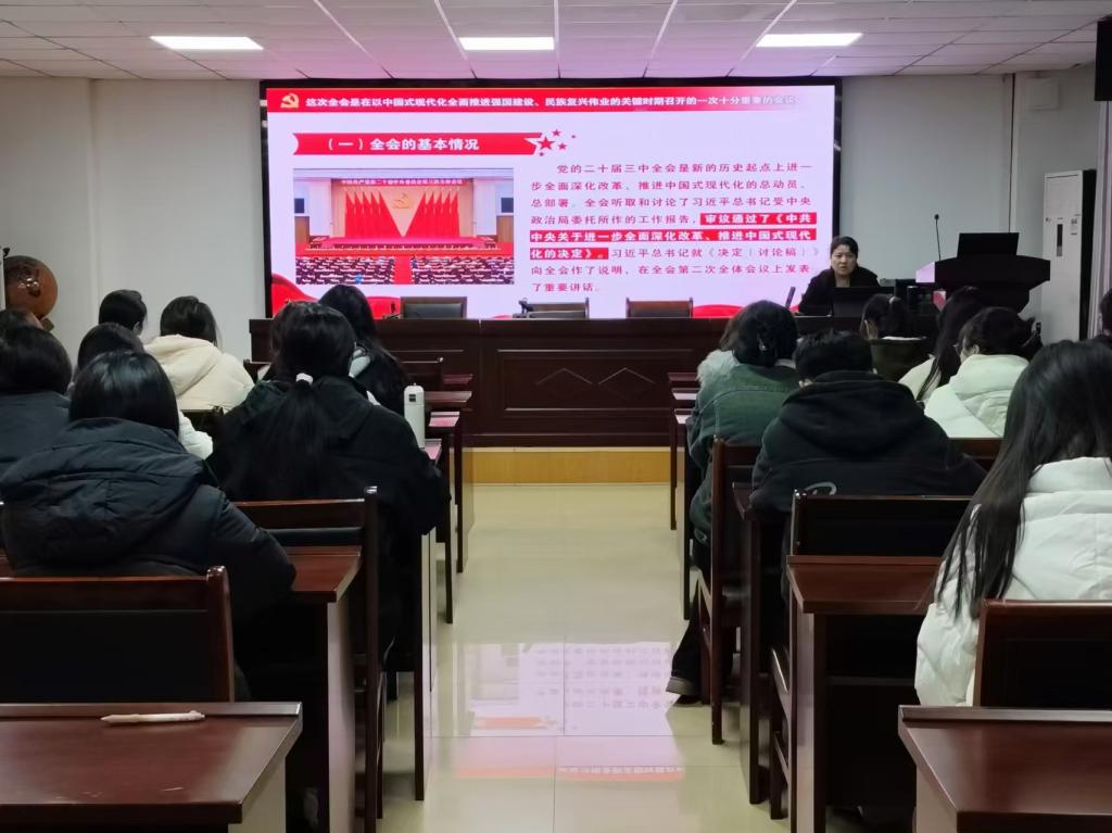 为切实加强理论武装工作,助力大学生党员深入领会习近平新时代中国特色社会主义思想,确保全体党员在思想上与党中央保持高度统一,12月4日上午,万象城官网党委书记宋力在理科楼南410会议室,为2024年下半年新发展的党员同志们讲授了题为“深入学习贯彻党的二十届三中全会精神,全力推进中国式现代化”的专题党课。