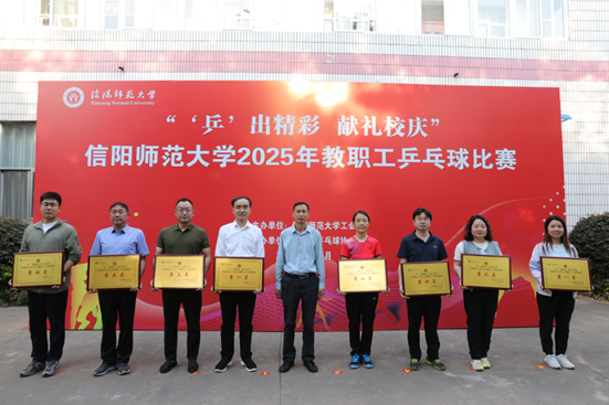 4月28日,信阳师范大学“‘乒’出精彩 献礼校庆”教职工乒乓球比赛在信阳师范大学工会楼闭幕,此次比赛旨在庆祝信阳师范大学建校50周年,展示教职工精神风貌,促进全民健身运动。