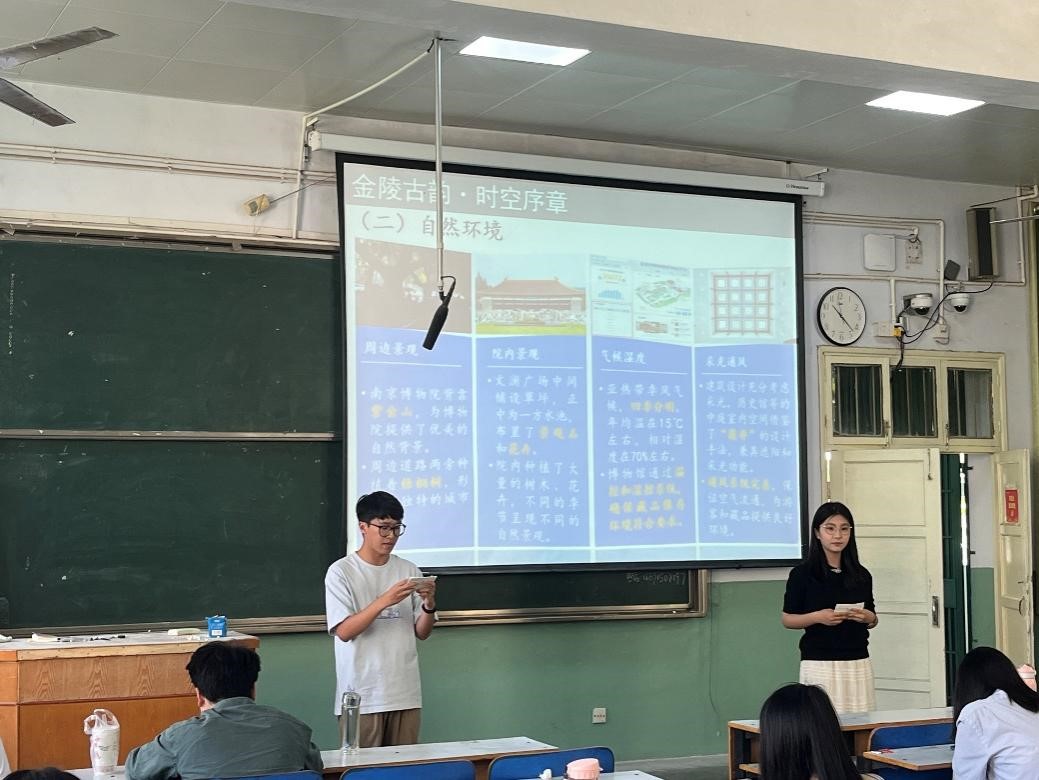 此次汇报以南京实习相关观察点的实地调研为基础,聚焦南京这座千年古都的历史积淀与当代发展,围绕“历史地理与遗址保护、城市规划与空间结构、旅游地理与文化景观、历史记忆与文化传承”四大主题展开。在历史地理与遗址保护板块,学生们以紫金山天文台和江南贡院为案例,探讨了南京在文化遗产保护中的探索与实践。通过梳理紫金山天文台从古代观星遗址到现代科研基地的演变脉络,汇报小组分析了自然地理环境与人类科技活动的互动关系。江南贡院作为中国古代最大的科举考场,其保护修复工程与科举文化展示模式的创新,成为学生研究历史遗址“活化利用”的鲜活样本。