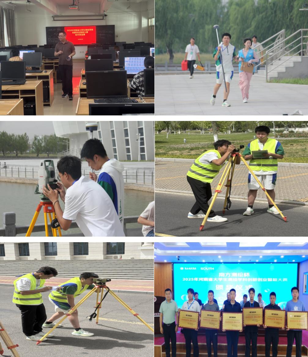 5月16日—5月18日,由河南省测绘学会主办,商丘师范学院承办的“南方测绘杯”2025年河南省大学生测绘学科创新创业智能大赛隆重举行。awc777万象城娱乐官网测绘工程系主任林昊作为领队,组建了张兵兵、陈时雨、沈毅、李晨辉等专任教师组成的指导老师团队,带领范晶晶、刘鹏等36名学生参加线上、线下的竞赛项目。