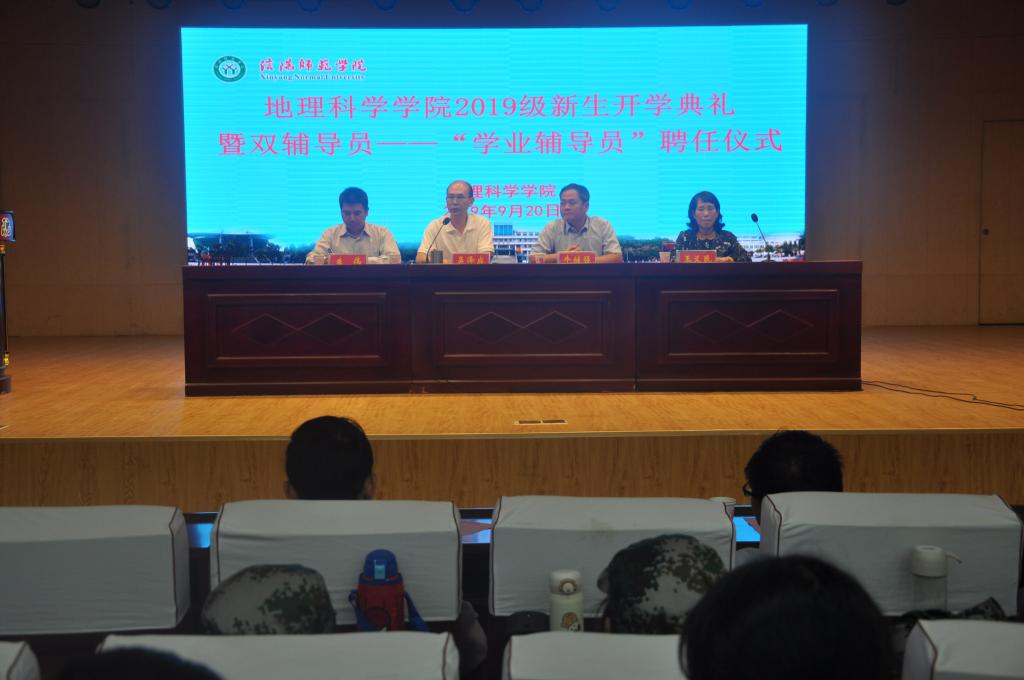 9月20日,awc777万象城娱乐官网于理科楼报告厅隆重举行2019级新生开学典礼暨双辅导员聘任仪式。院党委书记吴泽成,副院长牛继强、王义民,党委副书记朱伟,班主任老师及2019级全体本科生和研究生参加本次典礼。典礼由朱伟主持。