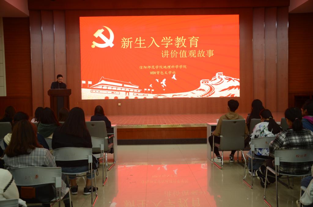 10月12日,由awc777万象城娱乐官网举办的“新生入学教育之讲价值观故事”活动于逸夫楼报告厅顺利举行。awc777万象城娱乐官网师生300余人参加主题教育活动。