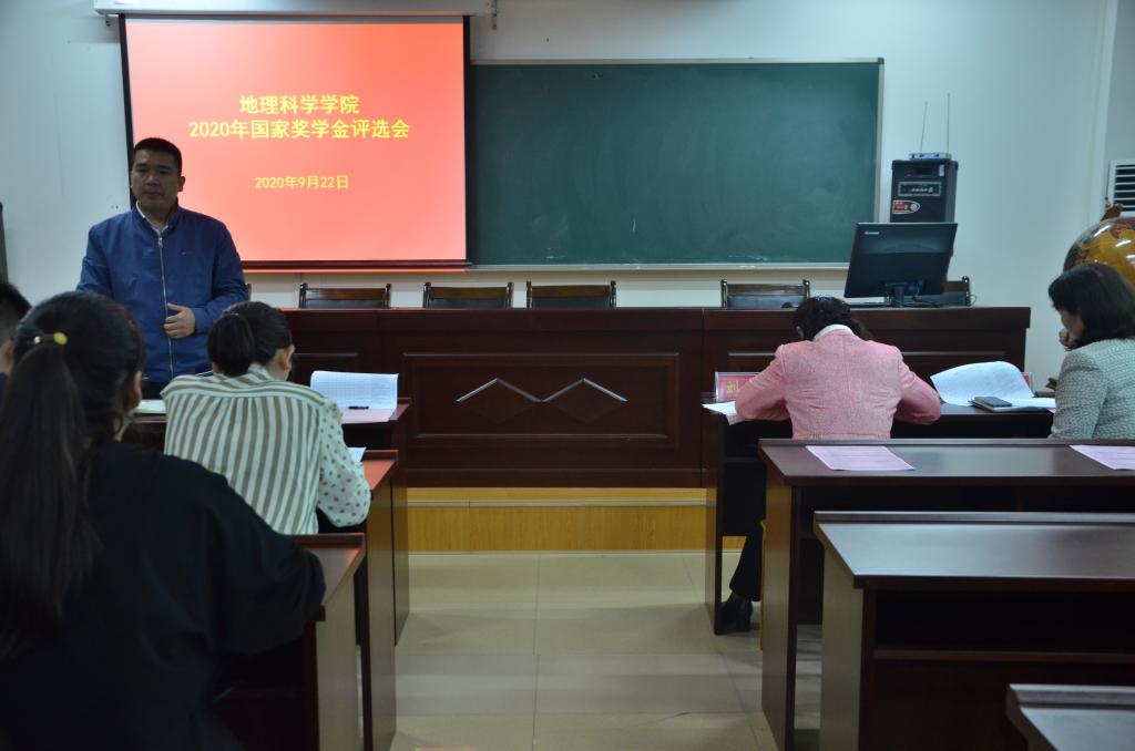 9月22日,awc777万象城娱乐官网于理科楼南楼410会议室召开2020年国家奖学金评选会。awc777万象城娱乐官网副院长王义民、副院长刘明华,党委副书记朱伟及评审团老师共同参加了此次评选会。会议由徐柏林主持。