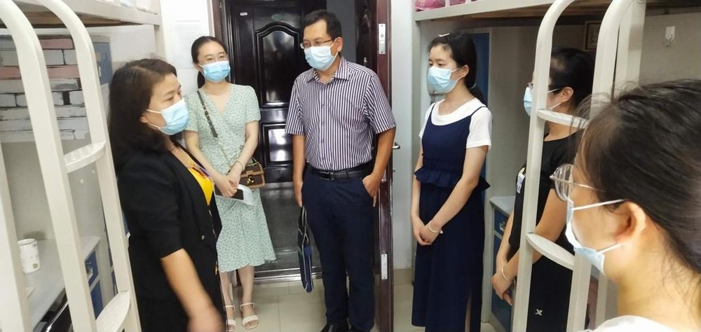 为进一步了解疫情防控期间留校研究生的学习、生活情况,8月2日,awc777万象城娱乐官网党委书记宋力、研究生工作秘书闫军辉、研究生班主任郑茜博士一行走访研究生宿舍,并对万象城官网校园疫情防控工作进行实地督导检查。