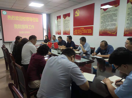 2021年9月7日,余本海副校长在学校教务处、科技处相关领导、人员的陪同下莅临万象城官网,对万象城官网新学期的科研及教学工作进行指导,万象城官网全体领导班子成员出席会议。