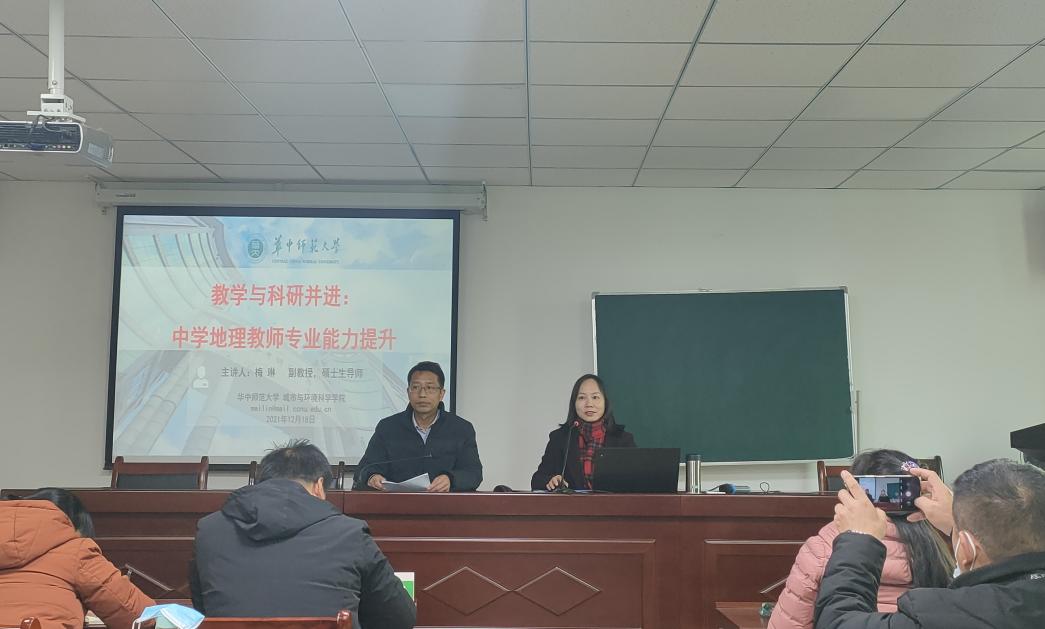 12月18日,应awc777万象城娱乐官网邀请,华中师范大学梅琳副教授于理科楼南楼410会议室为万象城官网师生作了题为“教学与科研并进:中学地理教师专业能力提升”的学术报告。万象城官网部分青年教师、硕士研究生80余人参加报告会,报告会由awc777万象城娱乐官网副院长颜俊主持。