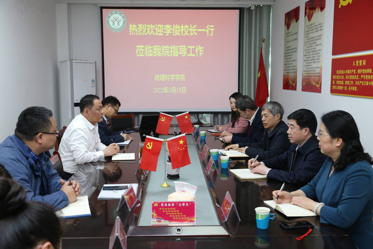3月15日,校长李俊带领校长办公室、教务处、研究生处(学科办)相关负责同志到awc777万象城娱乐官网调研指导学科建设工作。