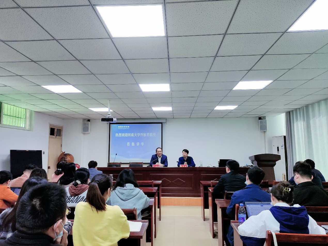 报告会上,乔家君教授从空间界面的内涵出发,从城乡界面作用机理、数理模型及空间界面实证等方面向与会师生分享了研究团队近年来取得的一系列研究成果。乔教授指出,空间界面理论下的城乡界面具有半透膜作用,对城乡要素流动具有存在性、准封闭性、可通性等特征,团队通过构建空间界面数理分析模型,探讨城乡界面对乡村经济、乡村重构、县域经济发展及贫困地区脱贫等方面的理论支撑作用。最后,乔家君教授结合具体的案例对空间界面理论进行了实例论证,指出致贫原因为单维空间界面作用的贫困地区,更容易借助帮扶政策实现快速发展、尽快脱贫。自由讨论环节,乔家君教授详细解答了师生的困惑,并与师生就报告内容进行了热烈讨论,现场气氛活跃。牛继强院长对乔家君教授精彩的报告表示感谢,牛院长指出,乔家君教授的报告高屋建瓴、受益面广,使我们对使用数据分析常见地理现象的方法有了全新的认识,为人文地理学、经济地理学以及其他的学科的研究提供一个值得学习的研究范式。牛院长号召大家学习乔家君研究团队十年如一日严谨的治学态度和谦虚向上的精神。此次报告既开阔了视野,又启发了思路,与会师生均受益匪浅。