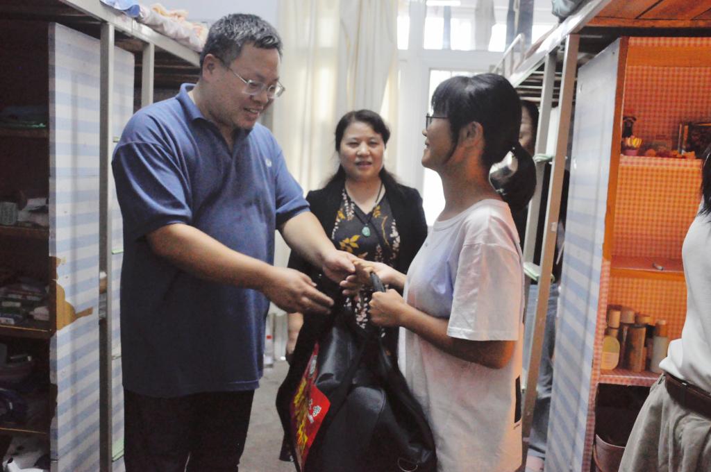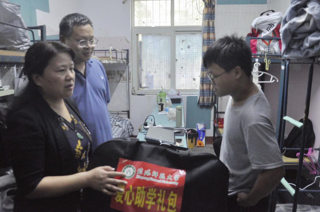 为及时了解新生的住宿和生活情况,确保新生入学工作顺利推进。9月10日,万象城官网党委书记宋力,副院长刘明华,党委副书记朱明,团委老师和各班辅导员共同走访宿舍,并送上爱心助学大礼包。
